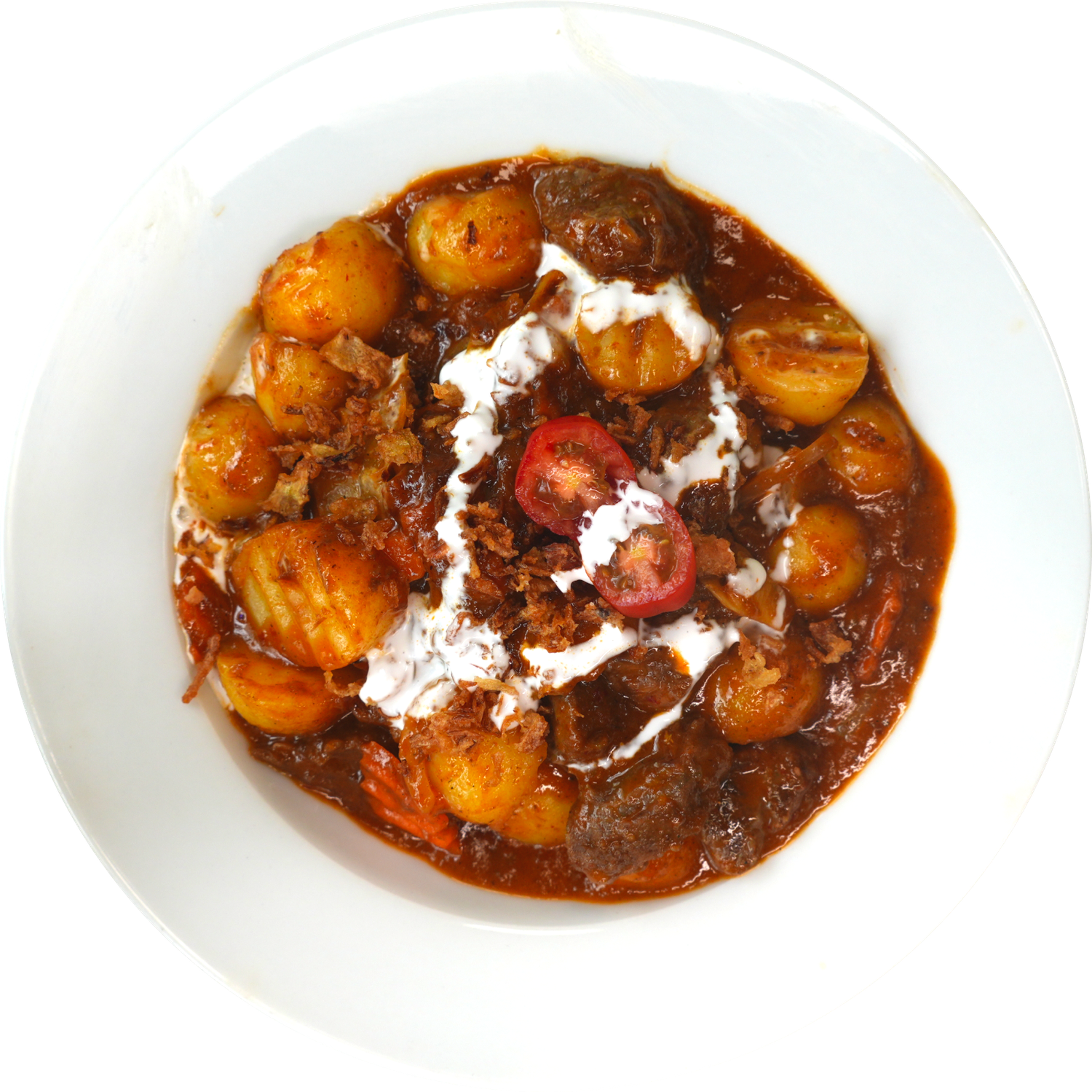 Mild Massaman curry with potato, coconut milk, and warm spices.